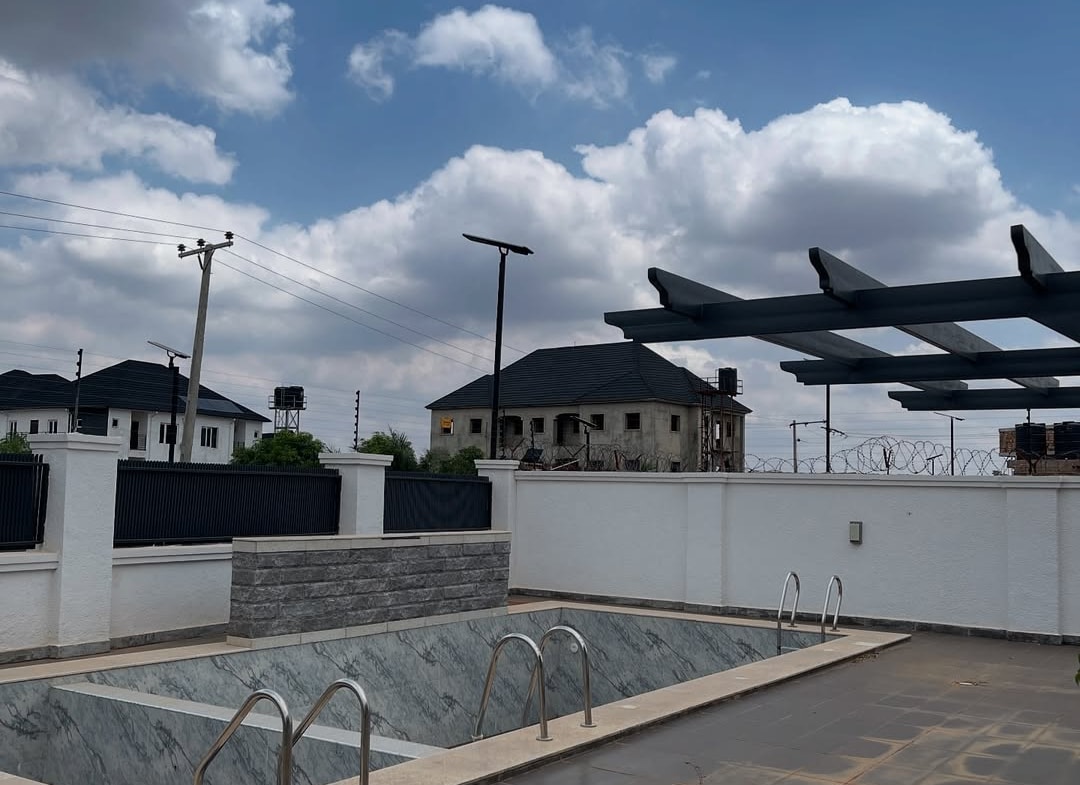 This newly built 4-bedroom terrace duplex with BQ is located in a serene part of Life-Camp (Main) with tarred road access. It features premium fittings and modern design, ideal for comfortable family living.